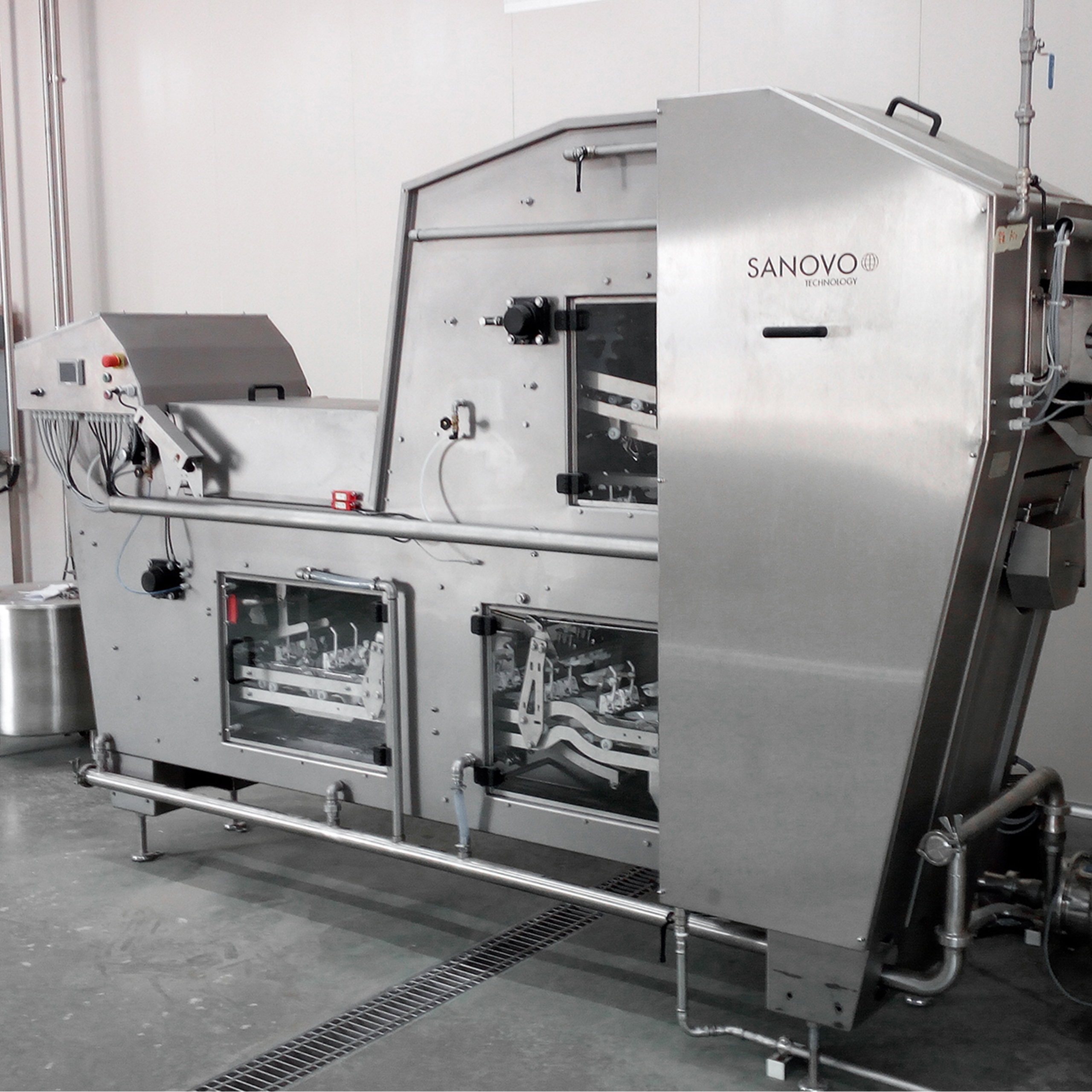 The Basic 2 consists of a 2-row egg-breaking compartment with 30 cracking units. Curve-controlled breakers bars ensure optimal breaking and separation for the most gentle handling of the valuable egg yolk. The industry-leading SANOVO egg yolk scanning system based on computer vision inspects your egg white to produce high-quality products - optionally available to you. The 3.5" color touch screen for operators let you access production data and alarms. Product outlets are installed at the bottom of the machine storing the valuable liquid egg, while empty eggshells are ejected via a chute. The machine speed is controlled by the efficient frequency inverter. All vital parts including cracking units are easy-to-access via large doors to facilitate maintenance and minimize downtime. For the most hygienic production, we recommend the optional CIP (cleaning-in-place) system.